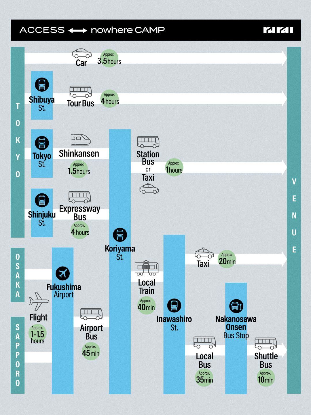 ・Shuttle service will be available between the off site parking ⇆ venue ⇆ Nakanosawa Onsen area.